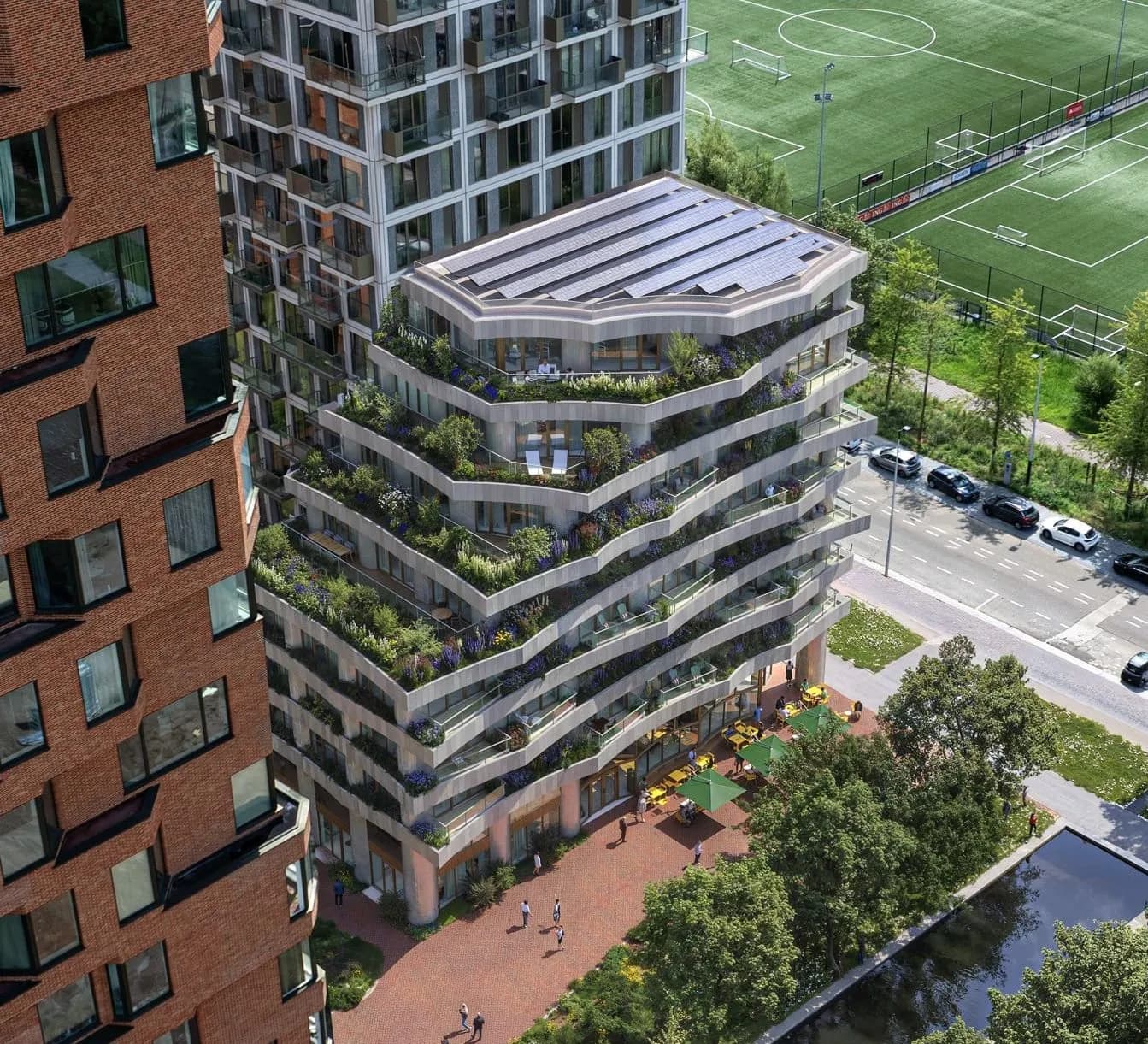 The bold design exceeds the standard take on a high-end living environment, proposing an exquisitely refined residential world that playfully flirts with a rich mix of natural, organic, high-tech and social features. The daring façade, with balconies that shift from broad to slender, that sometimes rise to double height, and with curves that ensure no reflection is ever the same, means the architecture never fully gives itself away.