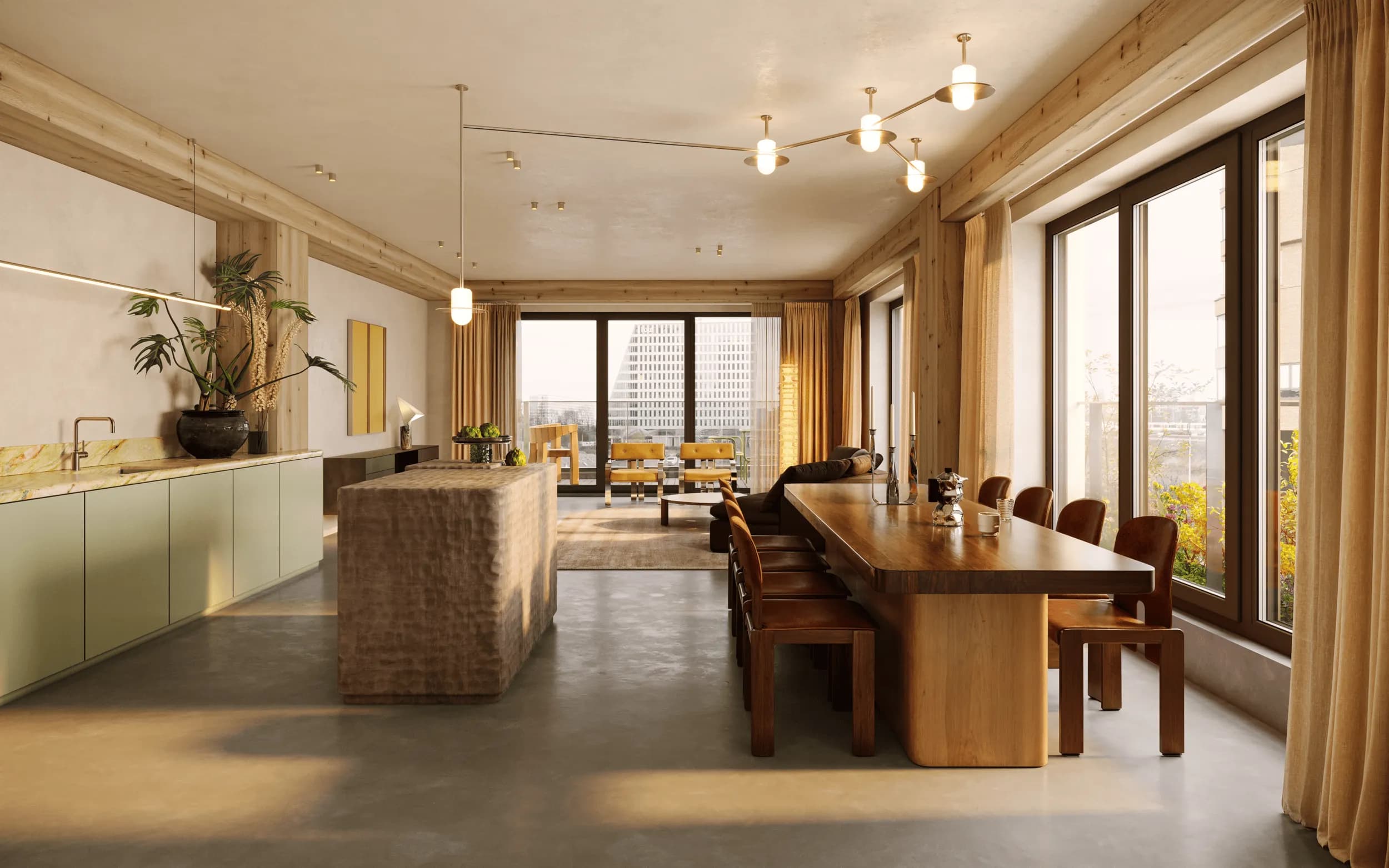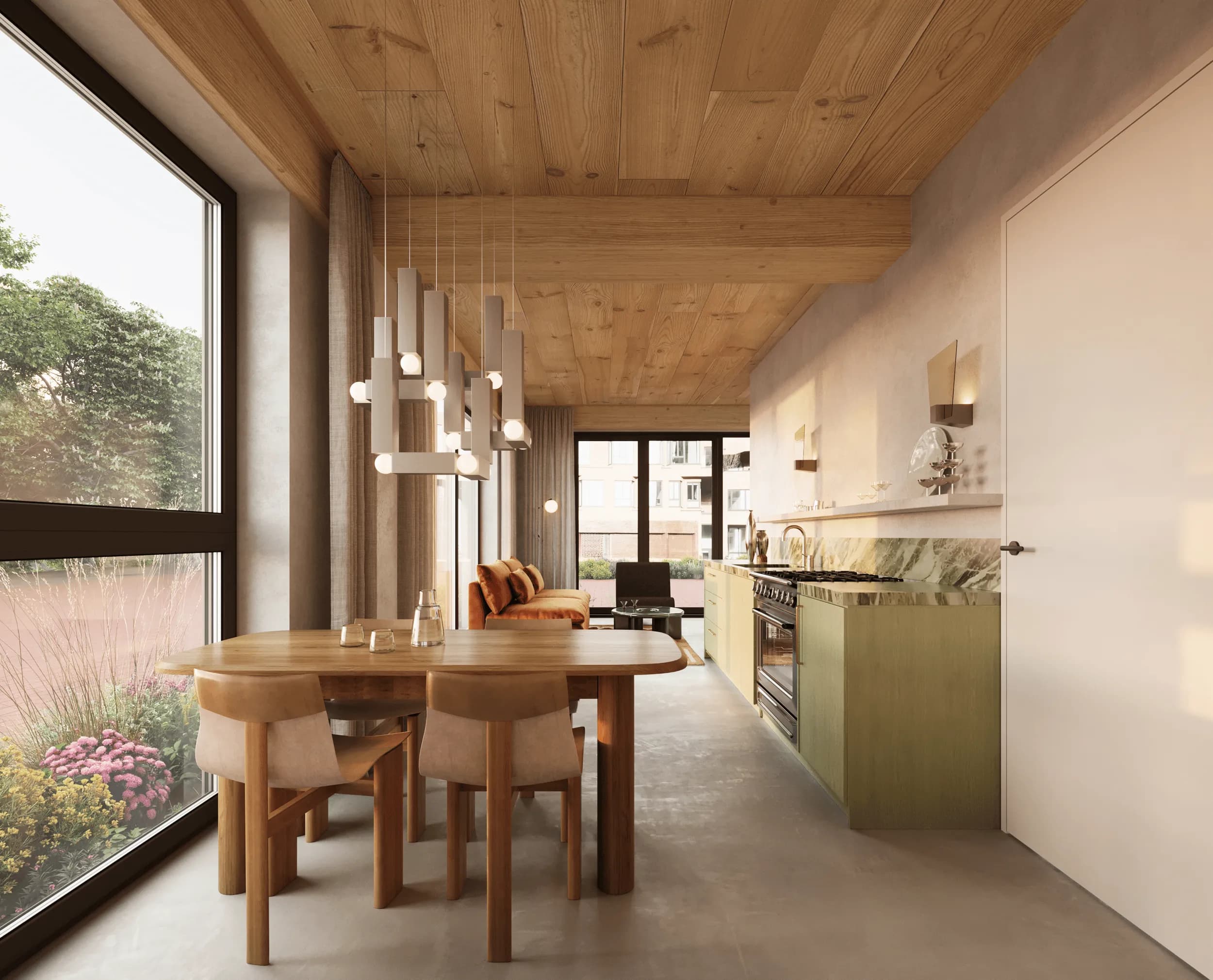 The penthouse is the true crown on Ceci: over 200 sqm of living space on the top floor, with four bedrooms and three bathrooms. With south, west, and north orientations and the building’s largest private roof terrace to the west, it’s a spectacular light-filled home, hard to close the door off.