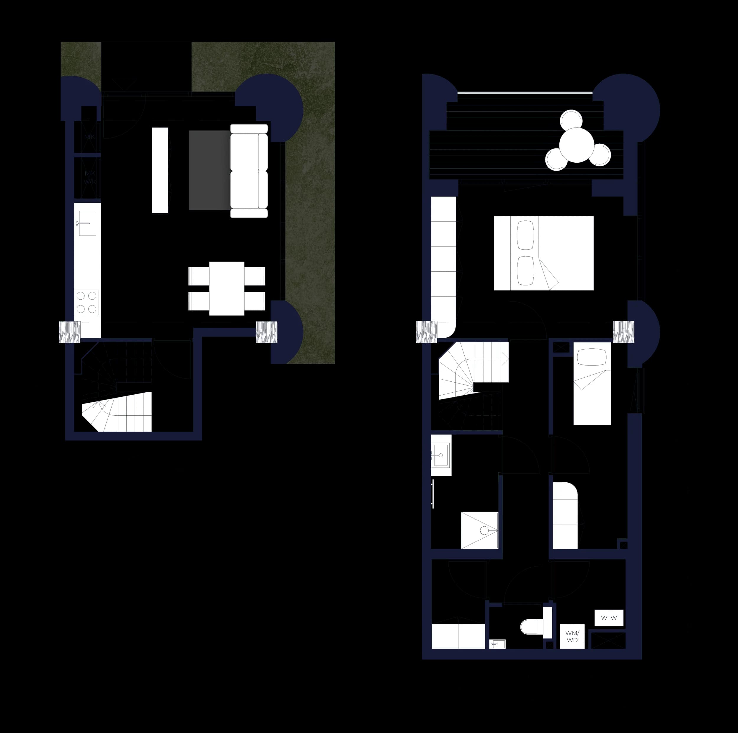 The second two-bedroom ground‑floor entresol residence has its own entrance and 9 sqm of secluded outdoor space. Sited at the very first courtyard of the Zuidas, it opens onto the intimate inner garden, offering a serene, green extension of the home.