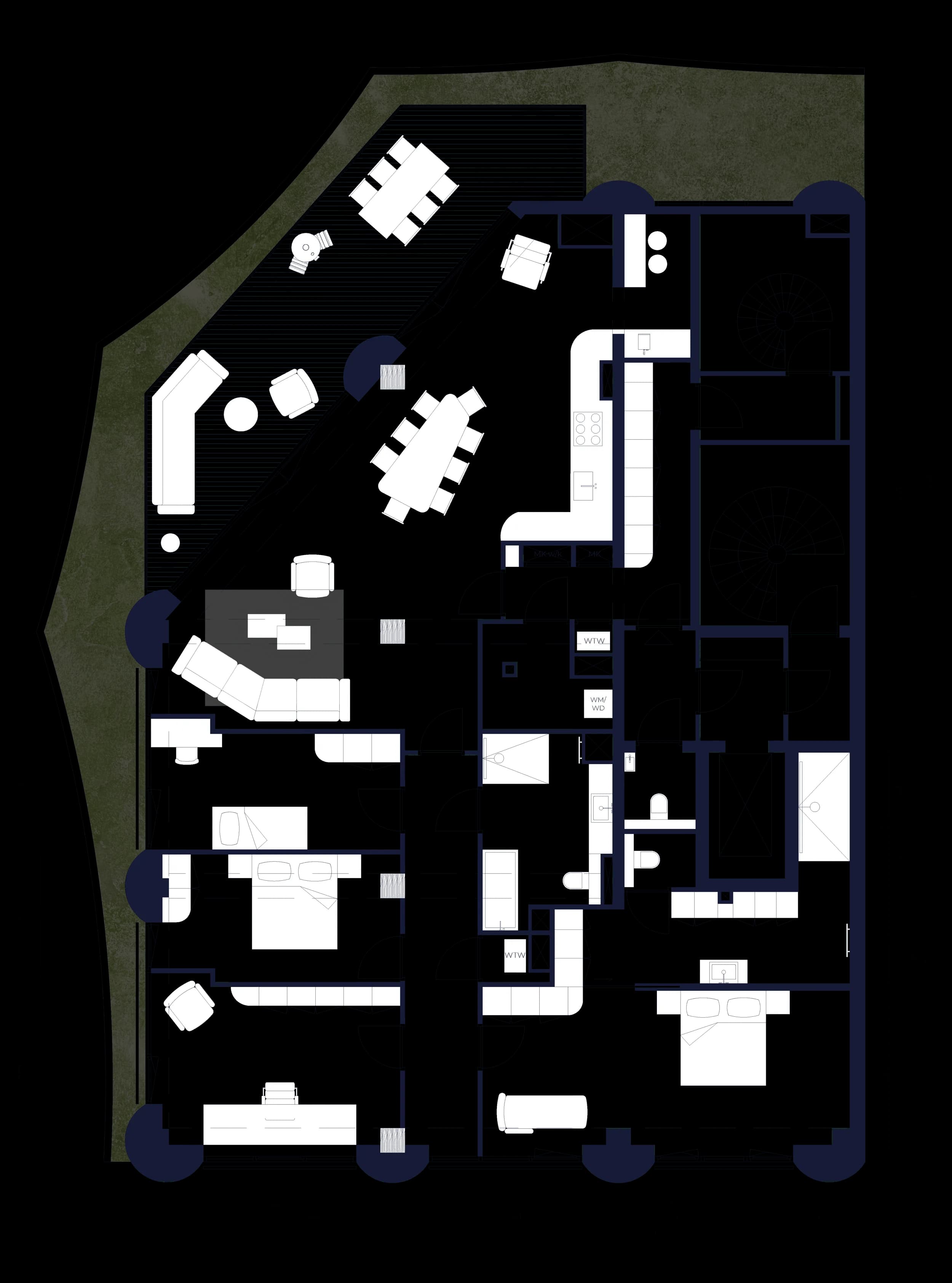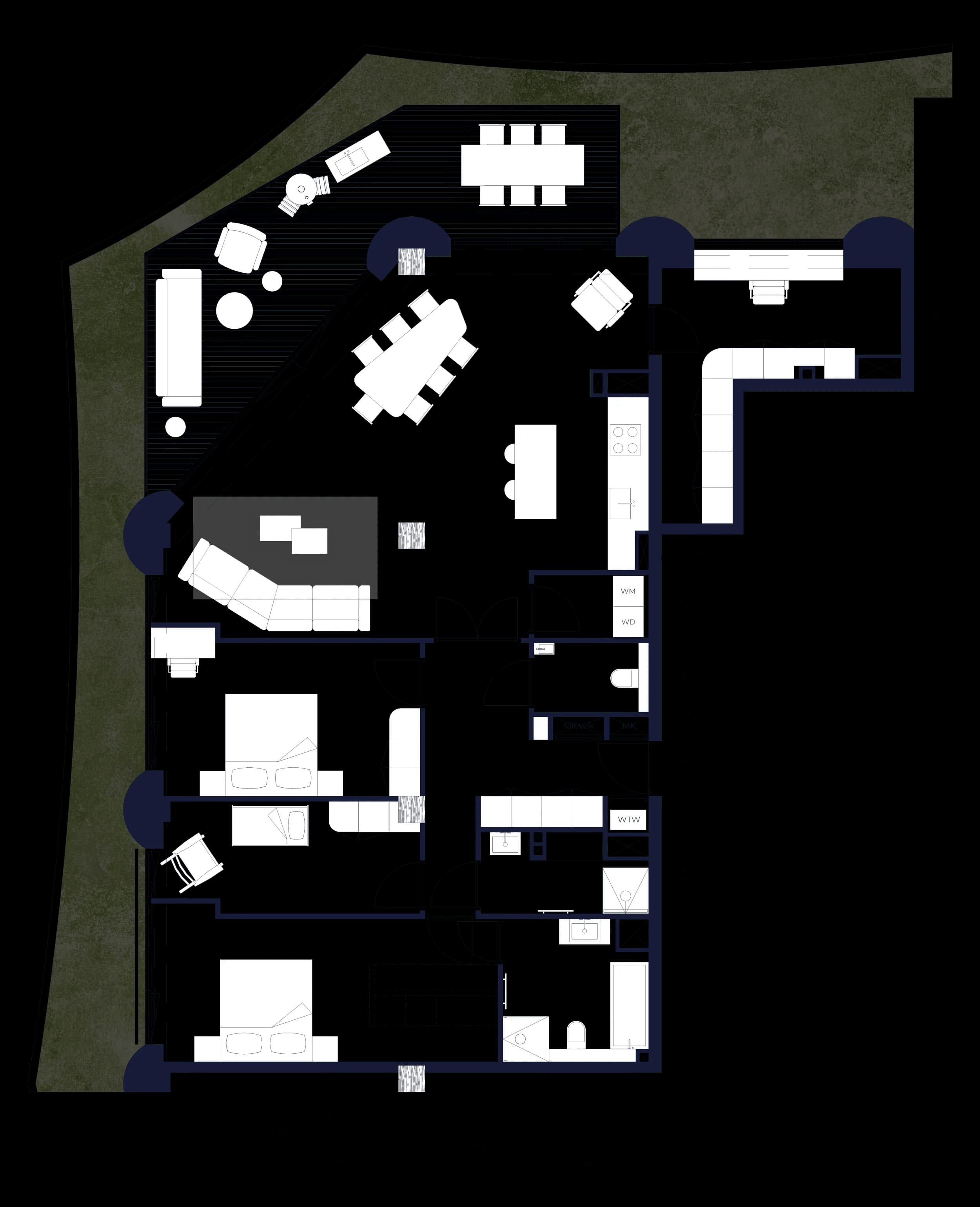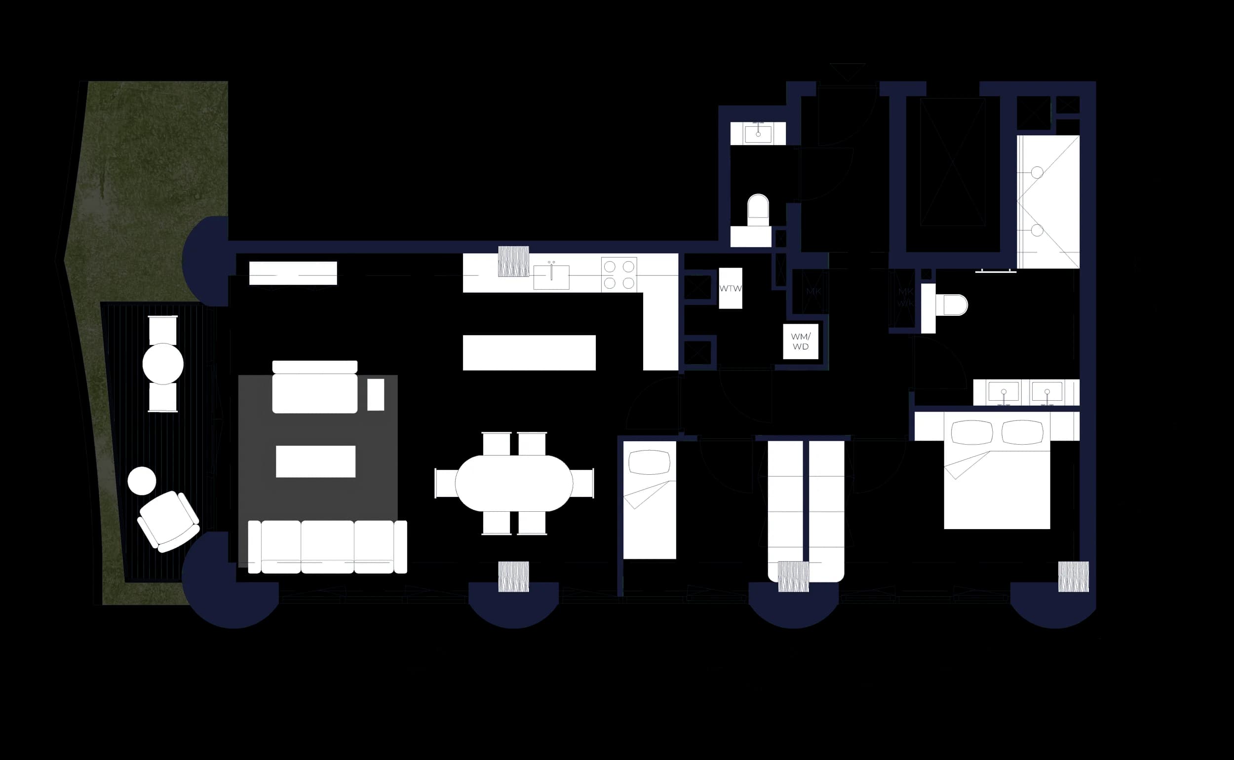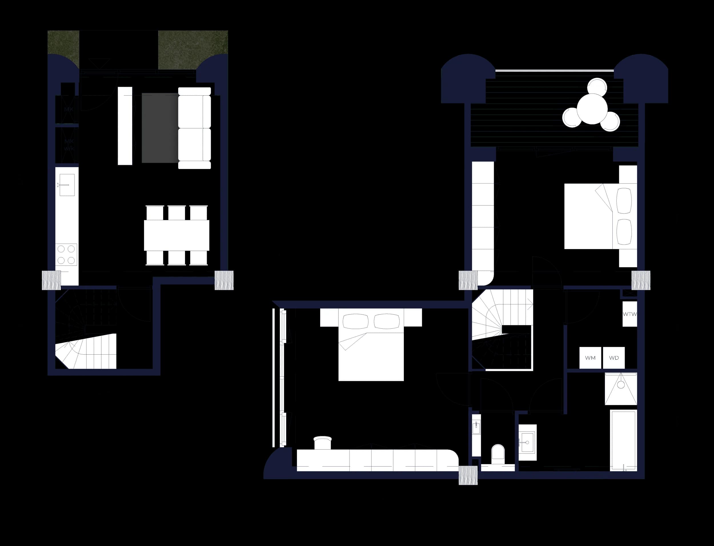 The generous 2‑bedroom, 2‑bathroom apartments are larger in size (100sqm) and oriented to the west, with views over the future canal that will be created here. Eight in total, they offer spacious single‑level living and long evening light.